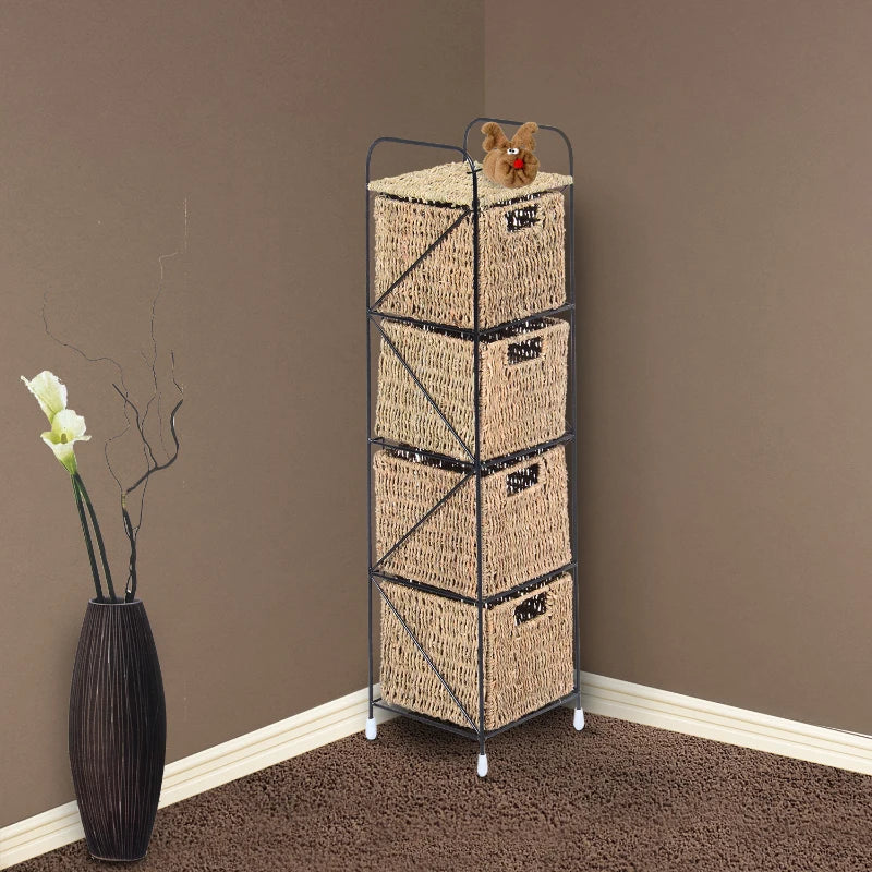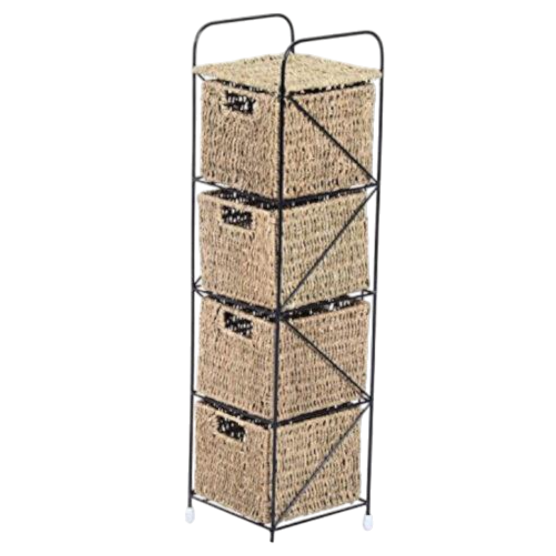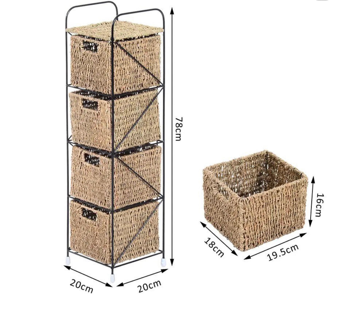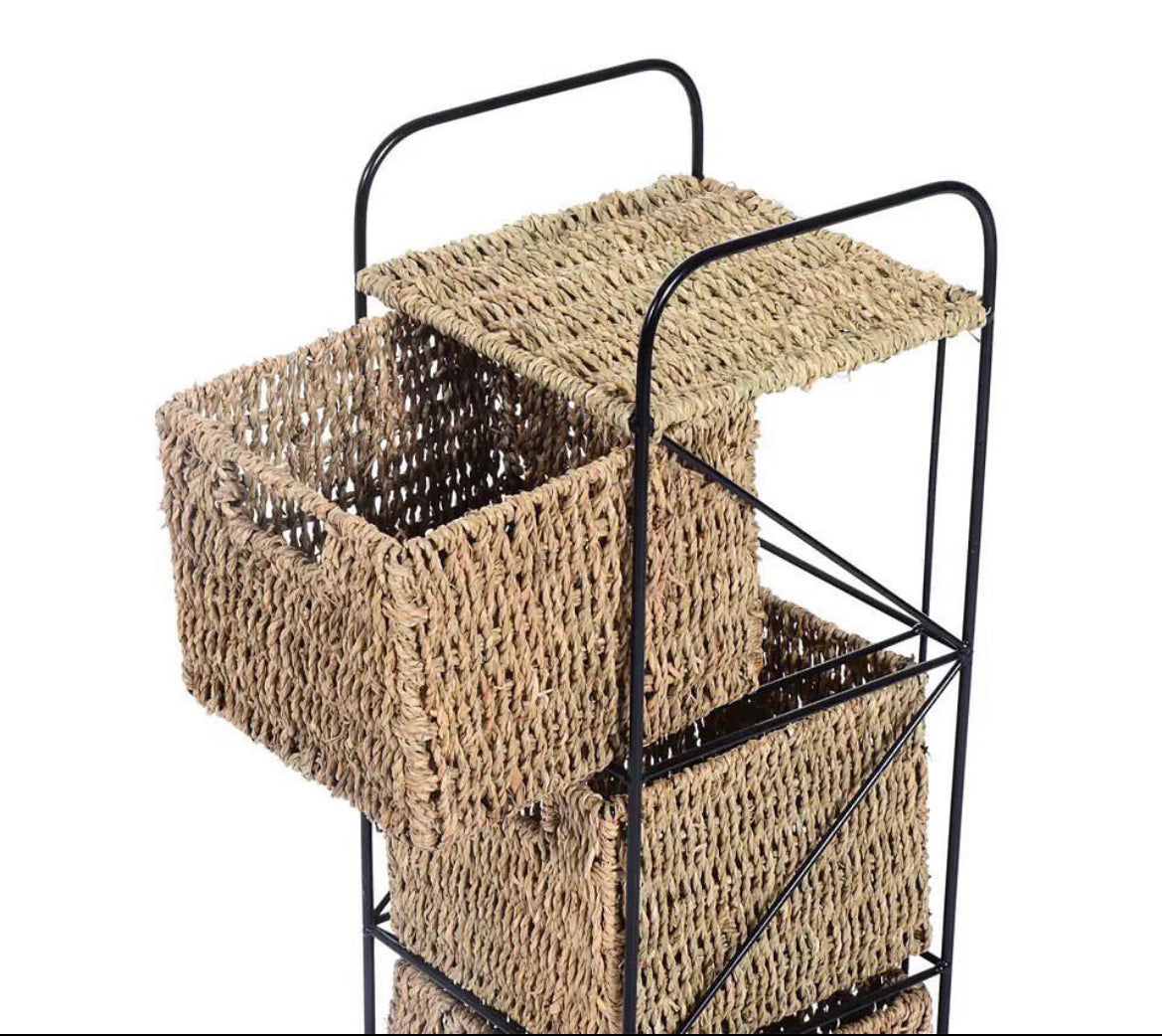 Agrega un toque de estilo industrial y natural a tu hogar con nuestra cajonera de estructura de hierro negro y cajones en un cálido tono marrón, que simula la apariencia del ratán o la totora. Esta cajonera de cuatro cajones combina la resistencia del hierro con la calidez y la textura natural de los cajones, ofreciéndote una solución de almacenamiento funcional y con estilo.