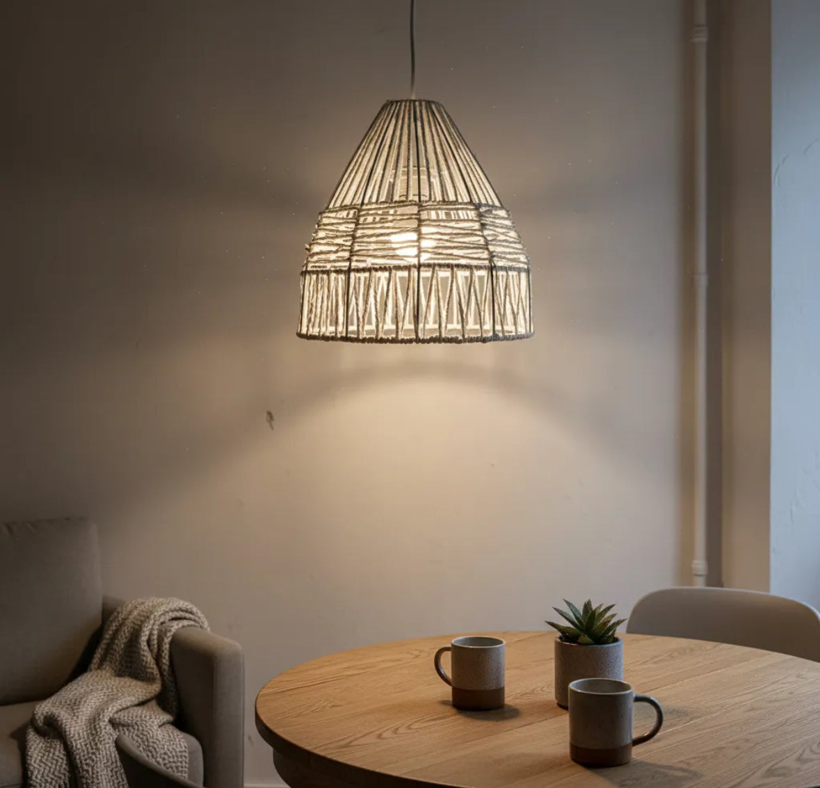 - Ideal para comedores, salones o dormitorios, aportando una luz cálida y difusa.
