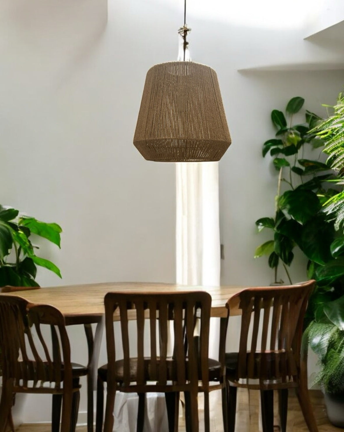 La luminaria Yangon es una pieza compacta y versátil, ideal para cualquier espacio que busque un toque de estilo natural. Con un diámetro de 30 cm y una altura de 37 cm, su entramado en símil rattán permite una difusión de luz suave y envolvente, creando ambientes cálidos y acogedores. Su diseño sencillo pero elegante se adapta a una amplia variedad de decoraciones, desde lo contemporáneo hasta lo rústico.